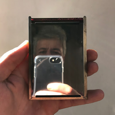 Tintypes don't take too long - 5min and you're done. Daguerreotypes are a lot more labor-intensive... Polishing that silver plate takes a while, then fuming, then development, then gilding... Sheesh! However persistence pays off and I was VERY happy with the result. I think this is my cleanest daguerreotype to date! There's a few white specs from tiny imperfections on the plate catching the light off my copy stand and also I probably could have developed about 15sec less to avoid some very minor 'frosting' of the shadows... I also went a little too wide with my flame swings during gilding and so that's where the white edges come from, but otherwise I'm fully satisfied with the image.